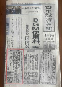 1月9日、日本経済新聞朝刊1面に、