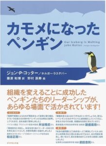 物語の舞台は、氷山の崩壊という危機に直面したペンギンの集団。現状に違和感を覚えた一羽のペンギンの「気づき」から、仲間を巻き込み、反対や不安に直面しながらも、新しい行動へと踏み出していきます。そこには、よく見られがちな「変わりたいが変われない組織の姿」がリアルに描かれています。